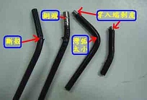 - 外導線殼穿入車手把內孔灣弧太小,斷殼都會影響剎車的靈活性。
