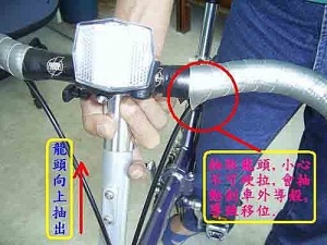 - 抽取龍頭時,請小心,不可硬拉,會抽動剎車外線導殼,導致移位而沒有到底定位。