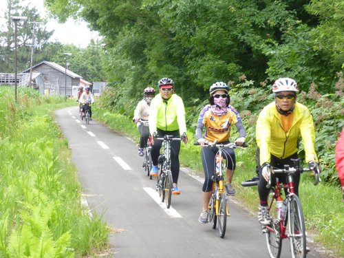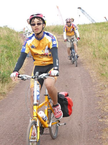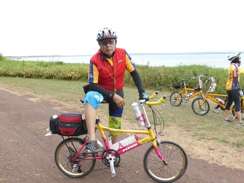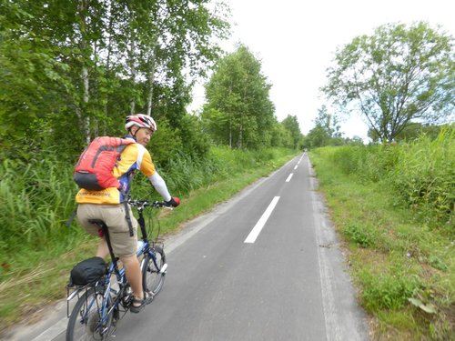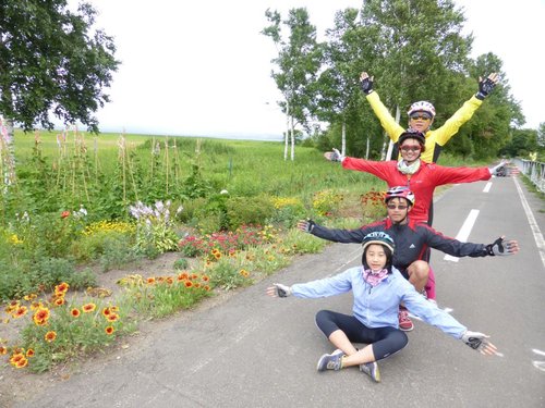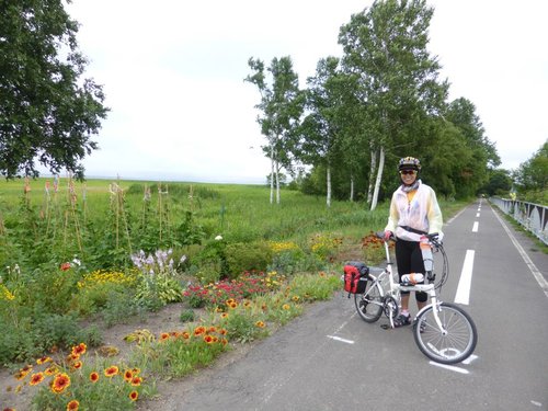 2013 北海盜團-4 網走 星期一, 2013/10/21 網走有名的單車道起點 果然~~~讚 (靠左行進) 因單行道沒折…雄哥可放心領騎 蔡医師的帥 vs 酷妹…O 先生在後指導 廖大哥因氣温19度C, 穿起風雨衣 下列三張請比較可愛的不同 國一蔡酷妹的酷可愛 校長的老來俏 V姐的輕輕熟可愛 哦~~此道原是火車道 蔡酷哥順利下沙路 北海道之道都是直的…據說最長直線有29公里 揑 胡大姐…享受拍照 抬著單車八字走出森林 耍帥…裝酷 咦~~~眼熟的花 是否是馬祖的裂萼花? 親家寂寞的表情…. 原是扇貝(貝柱的大本營) 加工廠 貝柱包子 蔡家戲八臂觀音…(左花是否是澎湖的天人菊?) 寶姑的甜笑…直線單車道 住…螃蟹本陣友愛莊…吃當地三蟹, 除了甜還加鮮… 謝謝 山澤 先生安排美食單車行 (待續) 北海道 / Hokkaido, 小折旅遊 / Folding Bike Travel, 日本 / Japan