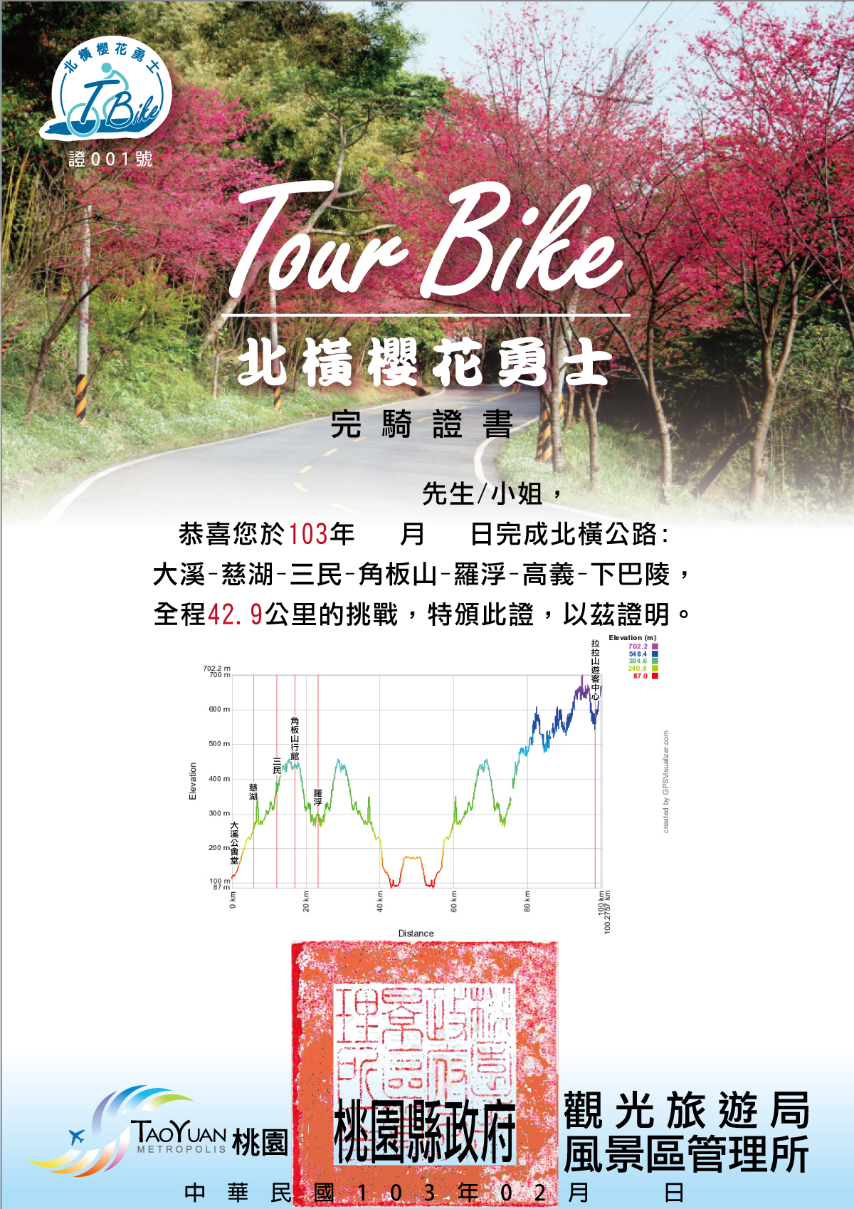 大溪~慈湖~下巴陵(挑戰42Km)完成全程者有証書