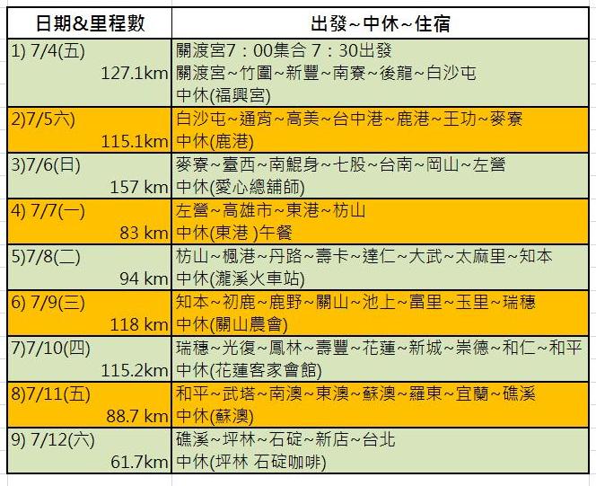 團費:含八天民宿(合房)、25餐、保姆車及2件環島車衣。