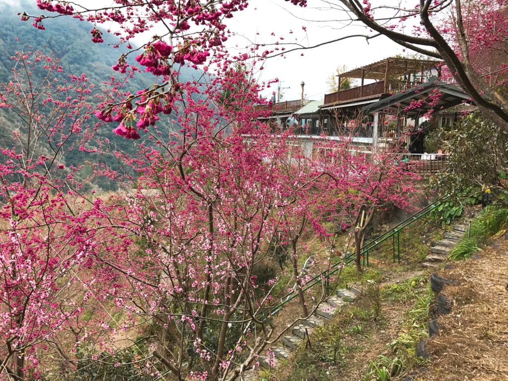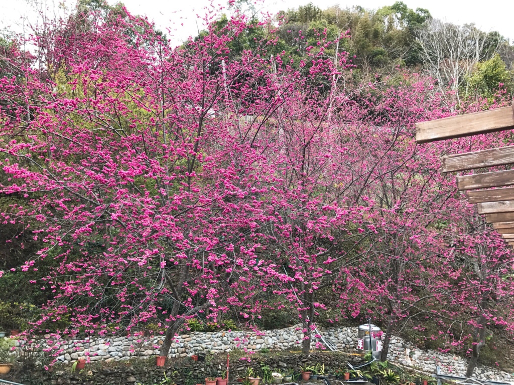 滿山谷八重櫻正盛開著等人賞呢。