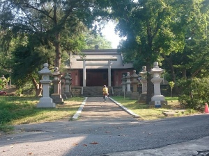 位於通霄火車站附近,虎頭山(海拔93m) 的虎腳下。日據時代,為推行皇民化,在各地建築神社,二次大戰日本戰敗,徹退各地的神社遭到拆毀。北台灣保存完整的是桃園神社,其次就是此座…通霄神社…格局依舊,但主殿、幣殿已遭拆毀,拜殿被改建成閩南式的建築,以祭祀延平郡王鄭成功為名,改為「忠烈祠」。最可笑的是,屋頂挿上<黨徽>。可惜,又遭受1999年的921大地震摧毀,撥款也只能搶救一部份而已,令人幾希。
