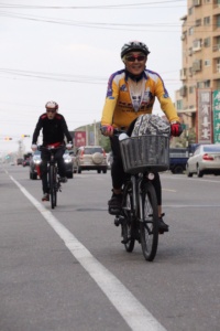 校長騎著电力輔助單車Easy 24,可以処理事情後,再趕路…很方便!