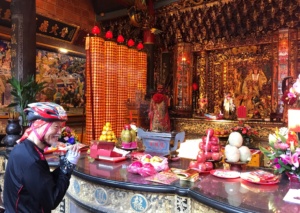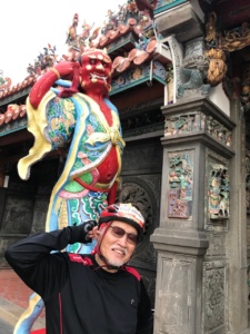 龍鳳宮的媽祖模模頭。媽祖說,乖…歡迎常來台灣騎車,哦!