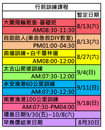 2.行前訓練請盡量配合,或務必自主訓練。
