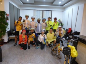 KHS印度代理…勉騎先生..傻眼 八家將 一波接一波 鍾大哥 無常 午餐還有35KM…><!!! 先加油吧 終於愛心總輔師的午餐到了 加水加水再加水 蘭花蚌…珍味 往台南市區 曼姐又自拍 市區到了 綠色青草茶 鄭成功廟 古木參天 騎到黃昏 美麗的夕陽 美麗的四海一家 加水 劉爸爸探班又伴手…就感心 (待續) 曼姐: 第三天。今天單程152k,累積里程387k。早上雲層黑又厚,兩滴雨就嚇的我一出發就穿雨衣(只有我穿),搞的裡面在下雨,不知騎了多久才脫掉。晚上抓龍完整個人很放鬆,現在腦袋空空,今日比較重點的地方幾乎都有打卡,深刻印象:午餐 … 閱讀全文 / Read more →